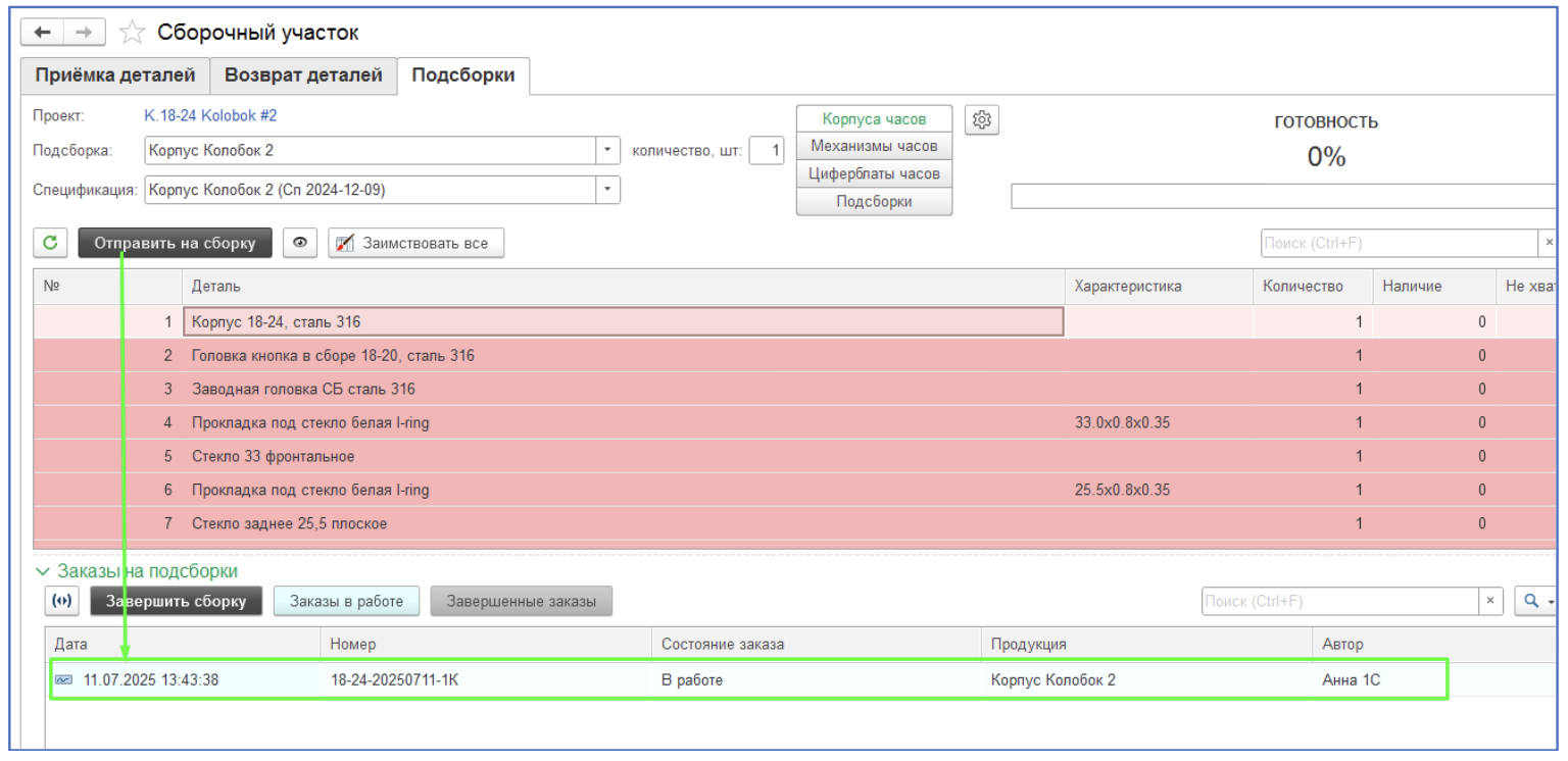 Описание: Создание инструкции для пользователей на АРМ "Сборочный" для создания заказа на подсборку.