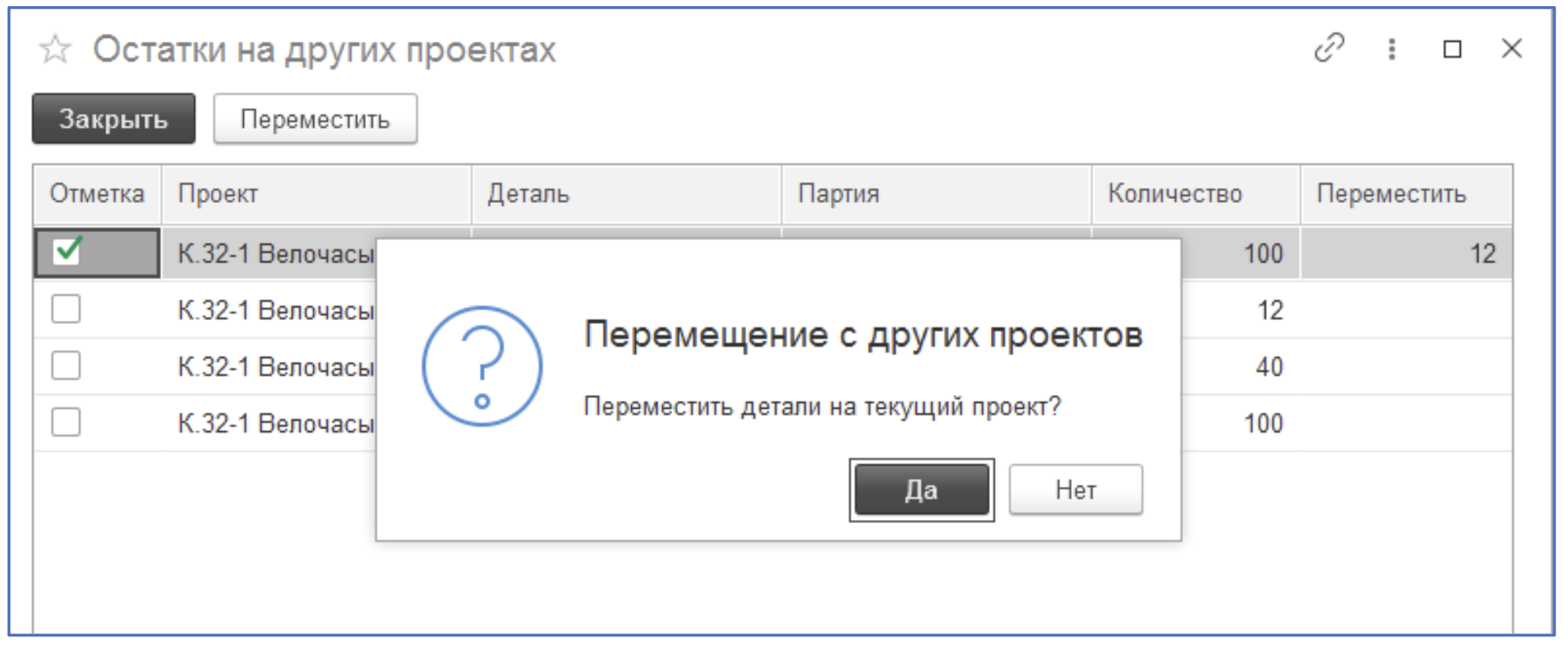 Если несколько деталей есть на других проекта, подхватить все возможные массово.